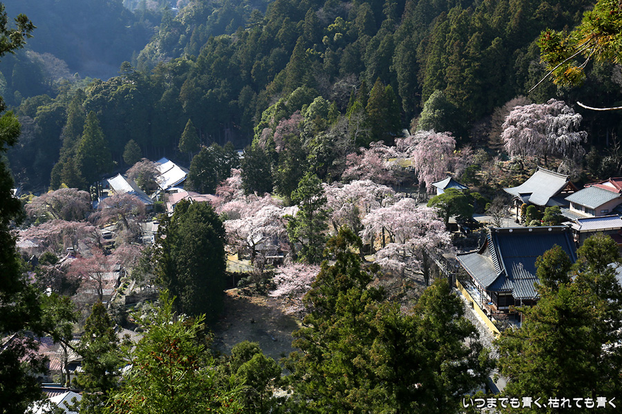 樹齢400年のしだれ桜がとてもきれいです。初めて訪れましたが、静かで落ち着くお寺でした。ちなみに、ここの石段は287段。一段の高さが高いので登りきる時は死にそうになります。