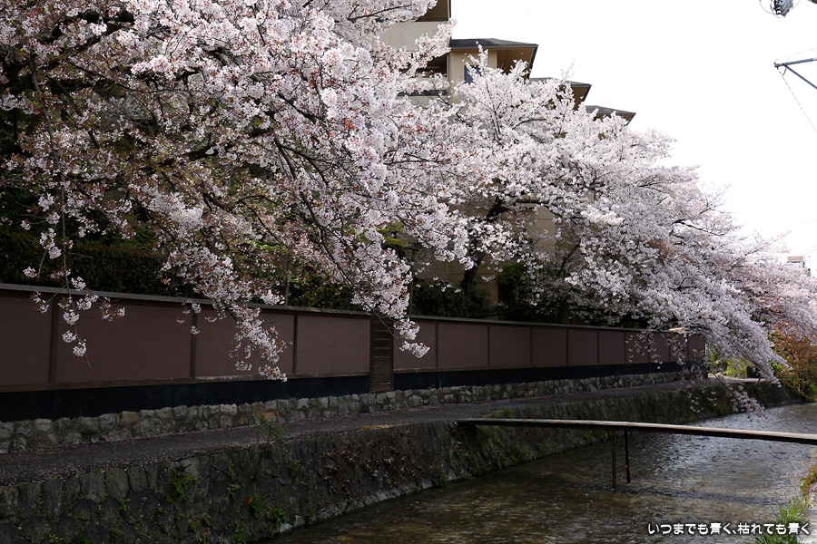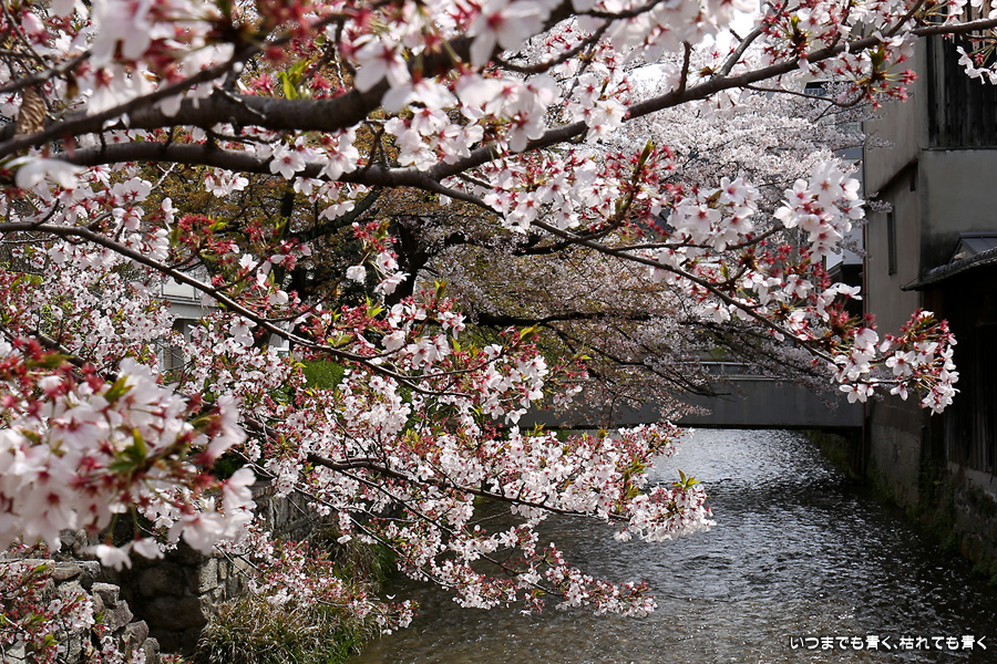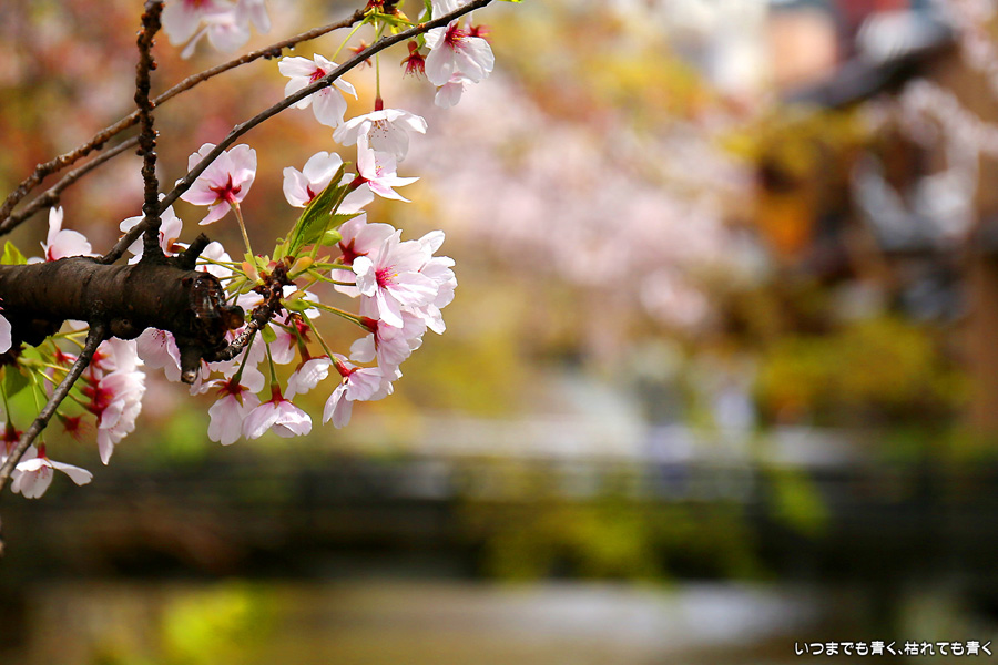 岡崎から祇園まで白川沿いを自転車に乗って桜を楽しみました。このあたりは私の好きなところで、行者橋や古川町商店街を楽しみながらのんびりと楽しみました。巽橋近辺は着物姿の女性も多く、写真にも少し入っていただきました。