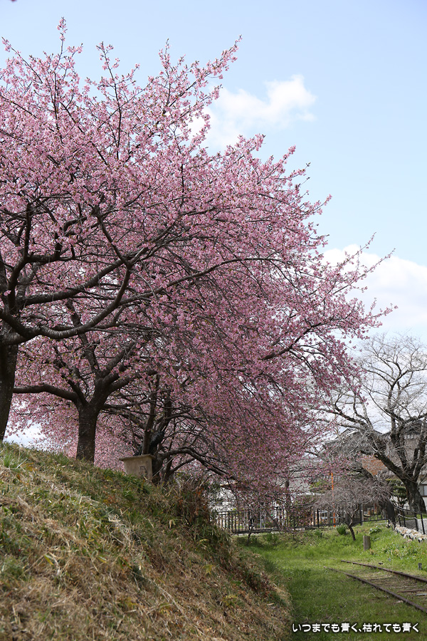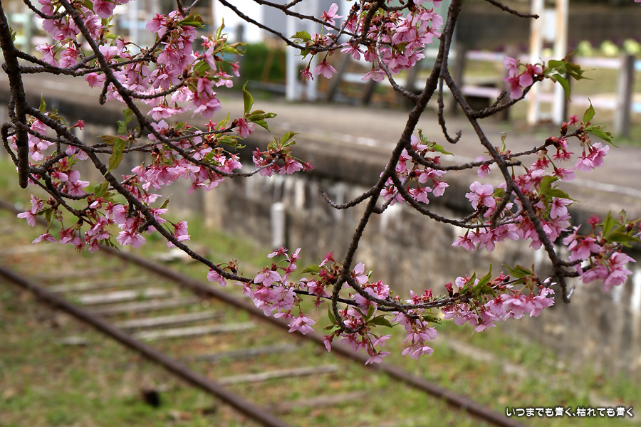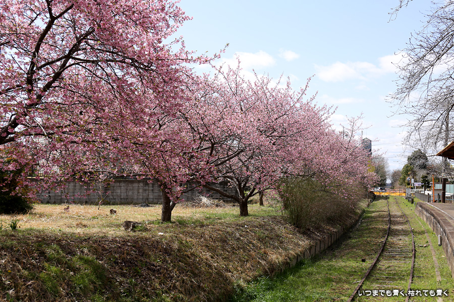 名鉄三河線の猿投駅から中西金駅間の山線と呼ばれる線が廃止になったのは2004年です。その廃線跡の三河御船駅跡には河津桜が植えられています。初めてそこに行って写真を撮ってきました。