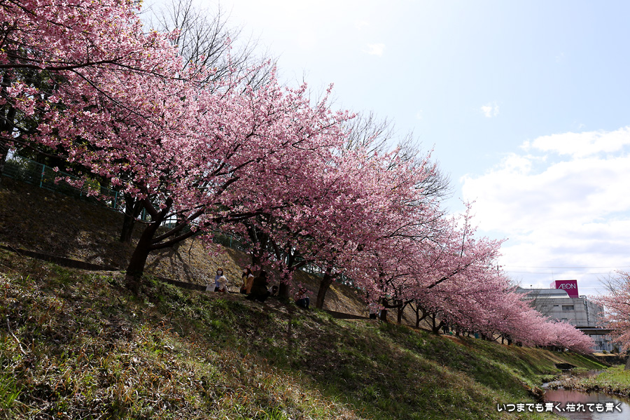 2022年3月20日に訪れた、豊田市・加茂川公園の河津桜の写真です。