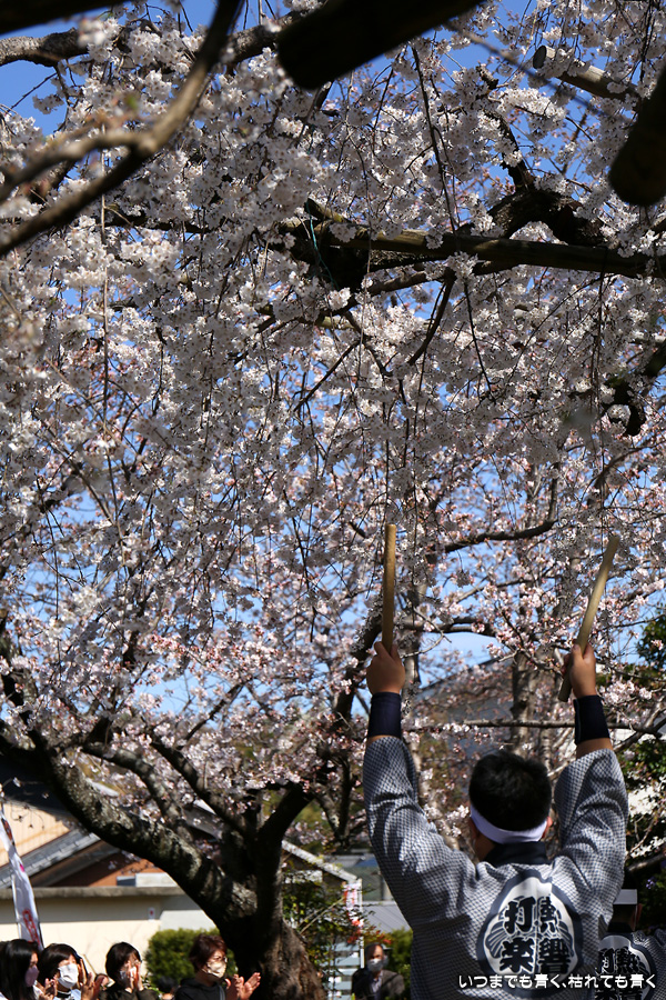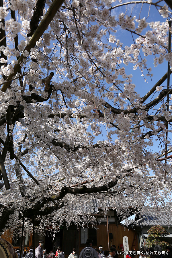 しだれ桜が見ごろの土日に行くのですから当然かもしれませんが、源空院を訪れるとよくイベントに遭遇します。今回は、源空院に着くとちょうど、西尾市を拠点とするプロ和太鼓集団「熱響打楽」の演奏中でした。桜の写真を撮るには不都合ですが、桜と演者という構図も面白いかもと思って撮影を楽しみました。最初は青かった空も二時間もすると白い空に変化し、雰囲気ががらっと変わったのも残念でしたが、それもまた面白いと思って楽しみました。最後の一枚は、写真撮影に行った場所でたまに遭遇する愛知県大村知事です。