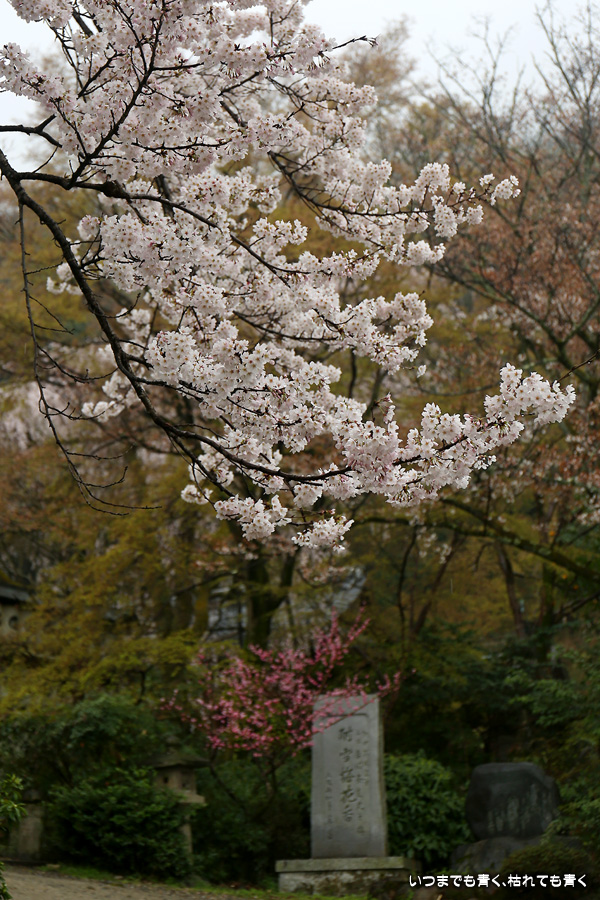 大石神社は、忠臣蔵の大石内蔵助良雄を祭神とした赤穂義士を祀る神社です。鳥居から桜のトンネルがあり、境内には有名なしだれ桜、大石桜があります。桜は、訪れた時が満開に近く一番の見ごろでしたが、生憎の雨で写真撮影には厳しい状況だったのが残念なところです。後半は雨は上がって傘無しで撮影できましたが、空はどんより白色で桜が空に溶け込んでしまってしまい、モノトーン的な写真が多くなってしまいました。また、機会があれば訪れたいと思います。