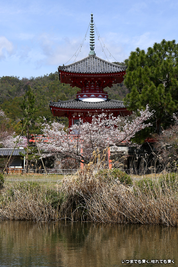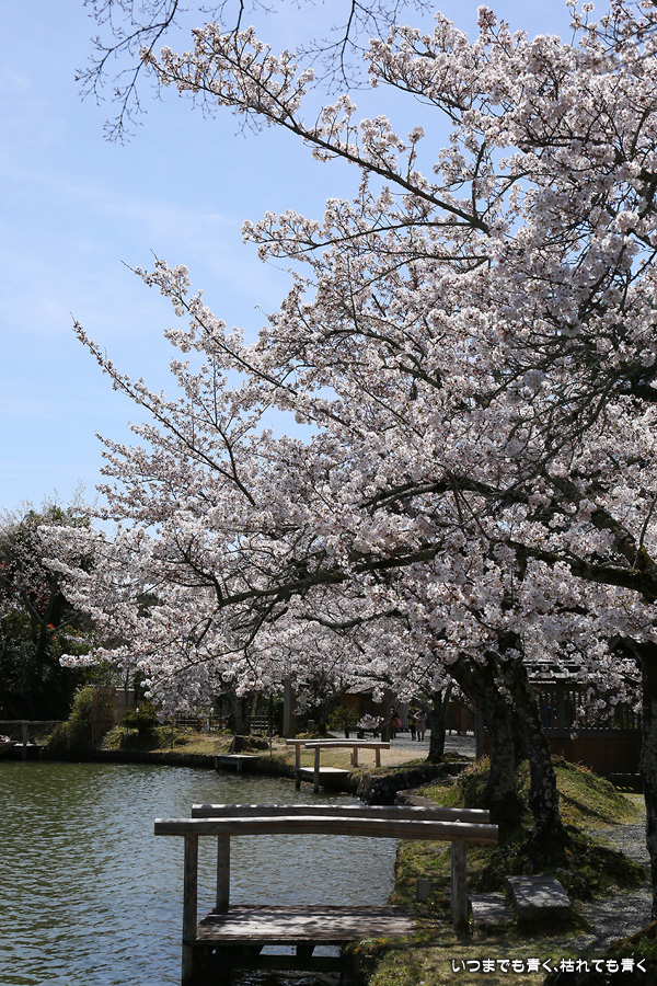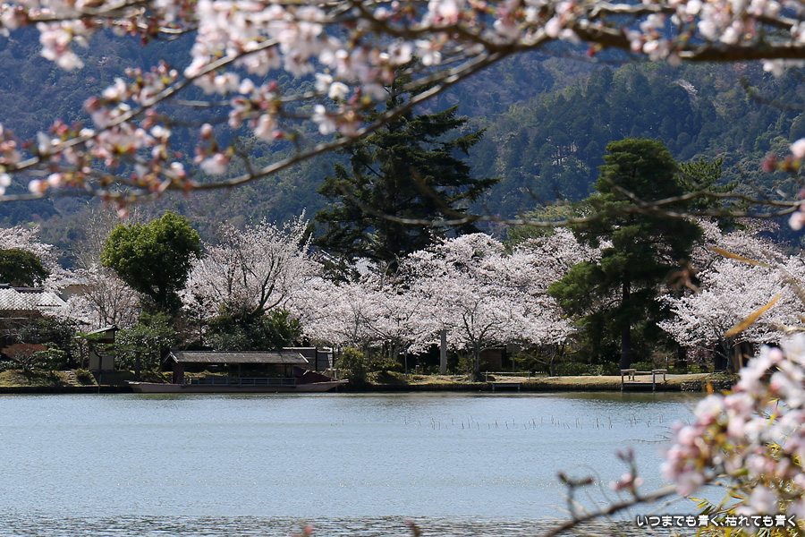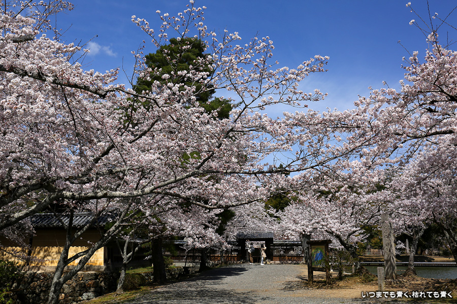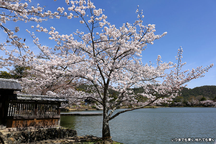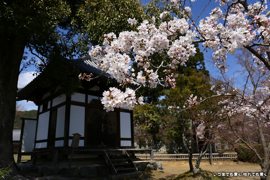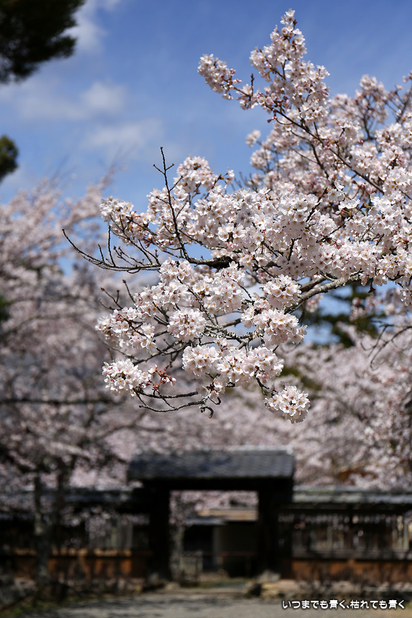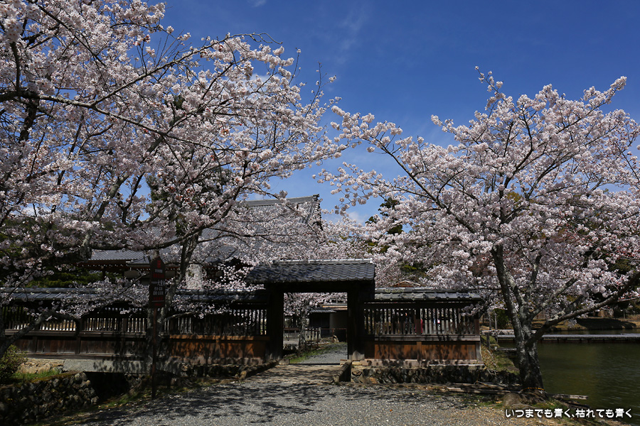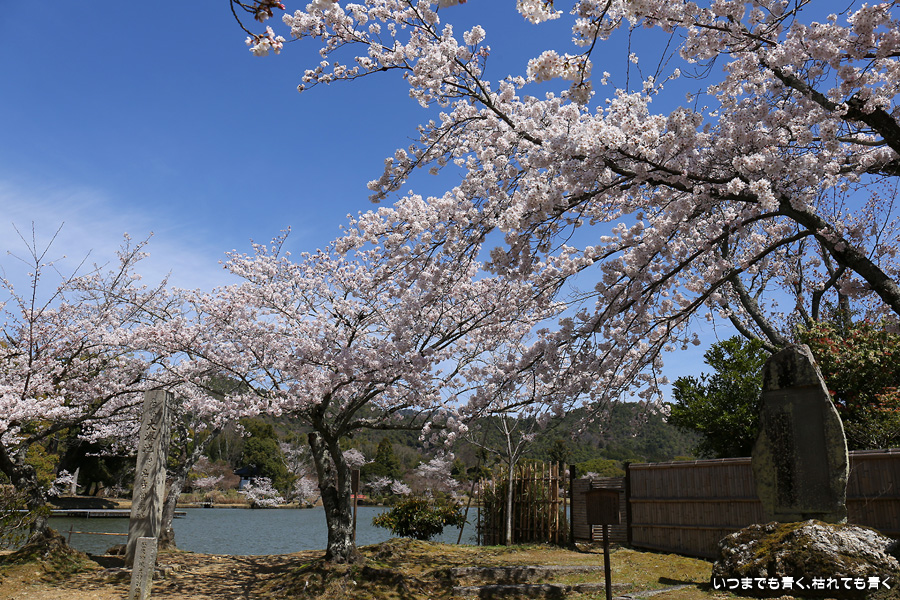 大覚寺は2015年の秋以来の参拝で、桜の季節は初めてとなります。今回はちょうど満開になろうとしている時で、お寺の方の説明によると、今が一番の見ごろだということでした。大沢池は時代劇では必ず出てくるロケ地で、ロケ地好きな私としては見覚えのある景色があって、その場面を思い起こしながら楽しく見てしまいました。心経宝塔と桜の構図はありきたりですが、やはり絵になるので場所を変えながら何枚も撮ってしまいまいました。桜にはやはり青い空が似合います。大覚寺でこの桜を見ることができただけで、今回の京都ぶらり旅の満足度100%です。
