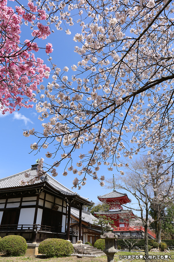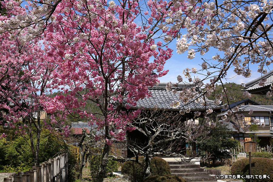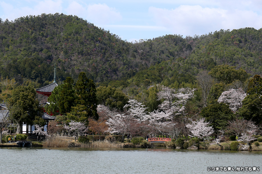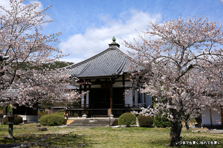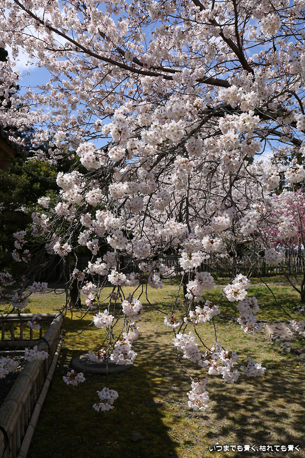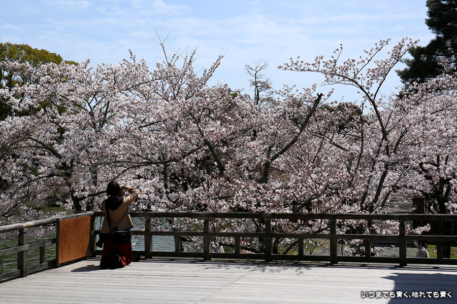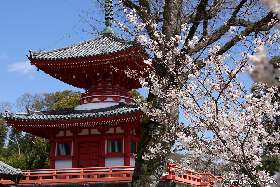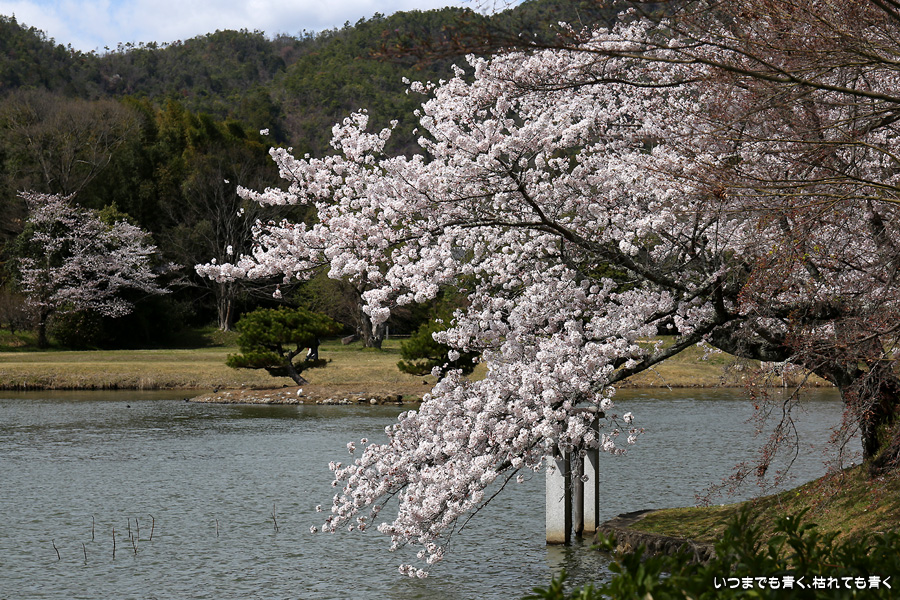 大覚寺は2015年の秋以来の参拝で、桜の季節は初めてとなります。今回はちょうど満開になろうとしている時で、お寺の方の説明によると、今が一番の見ごろだということでした。大沢池は時代劇では必ず出てくるロケ地で、ロケ地好きな私としては見覚えのある景色があって、その場面を思い起こしながら楽しく見てしまいました。心経宝塔と桜の構図はありきたりですが、やはり絵になるので場所を変えながら何枚も撮ってしまいまいました。桜にはやはり青い空が似合います。大覚寺でこの桜を見ることができただけで、今回の京都ぶらり旅の満足度100%です。