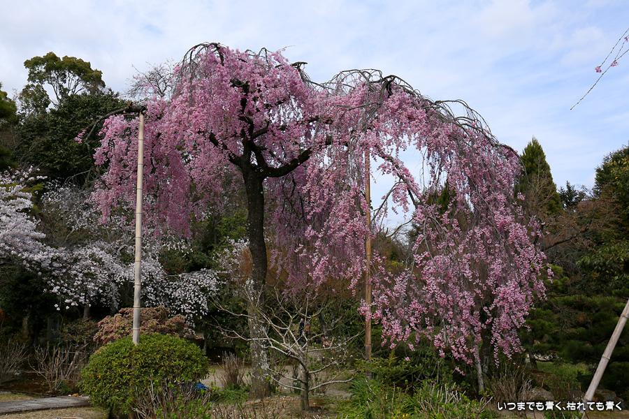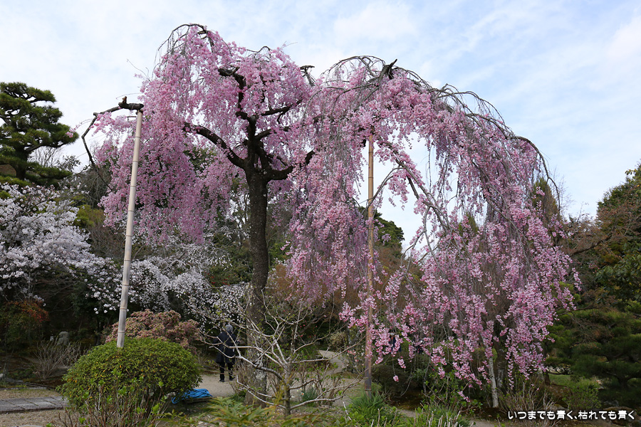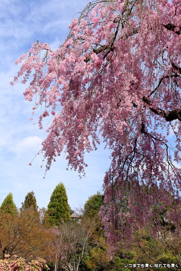 法金剛院は私の好きなお寺のひとつです。そこにある桜が待賢門院桜で、一度見てみたいと思って訪れました。待賢門院桜は見ごたえのある紅枝垂桜で、どこから見ても絵になる桜で、この桜の撮影だけで充分楽しむことができました。