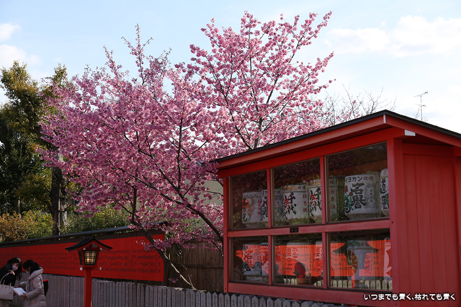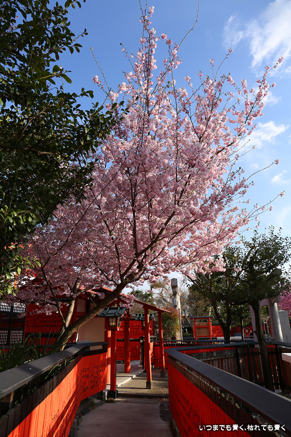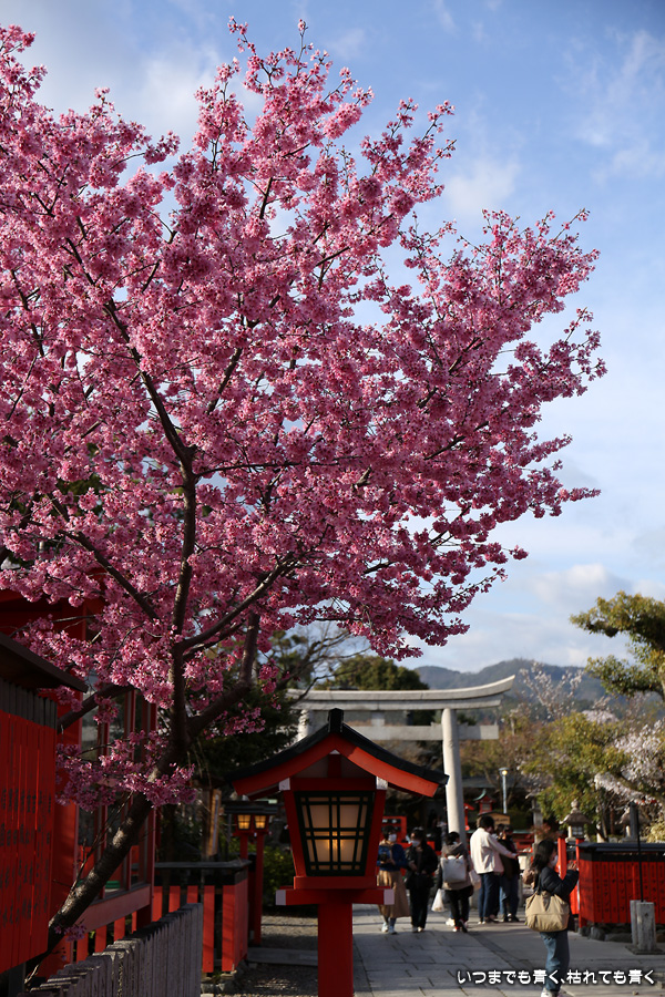 車折神社は渓仙桜というしだれ桜が有名で、それを見たくて訪れたのですが、渓仙桜はすでに散ってしまっていました。しかし、車折神社にはいろんな種類の桜があり、1ヶ月くらい桜が楽しめると言われていて、この日もいろんな桜を楽しむことができました。
