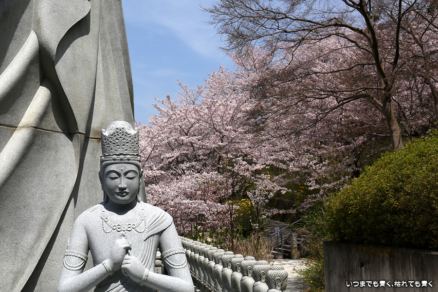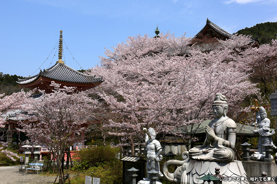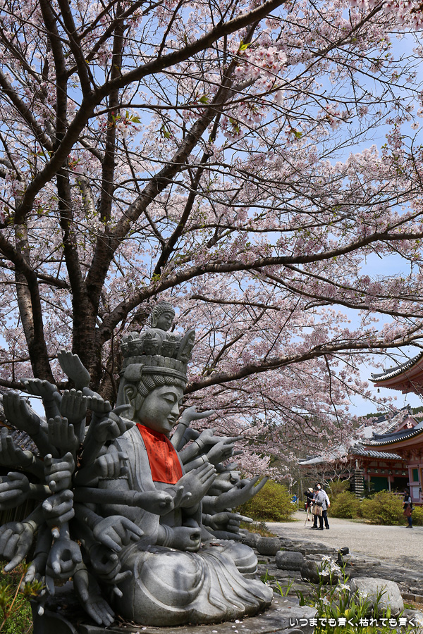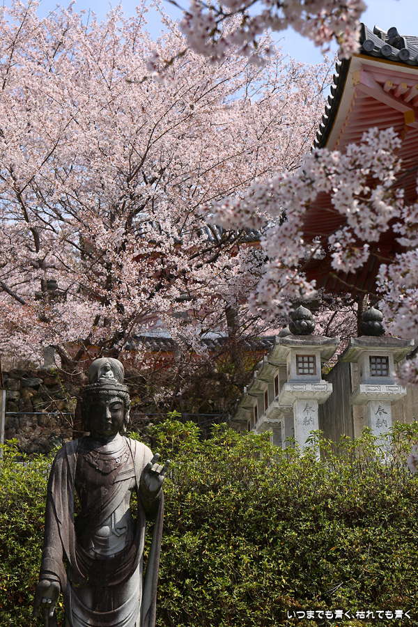 壺阪寺の桜大仏(桜と大釈迦如来石像)以外の桜の写真を別にまとめました。このお寺は桜大仏だけでも満足度が高いですが、その他にも石像や伽藍がたくさんありますので、写真撮影に退屈することはありません。桜もボリュームがあって美しかったです。午後になると風に舞う花びらが多くなってきましたので、この日が最後の見ごろ日だったかもしれません。