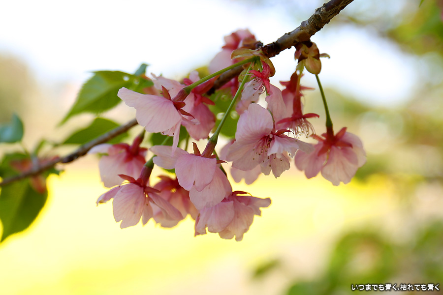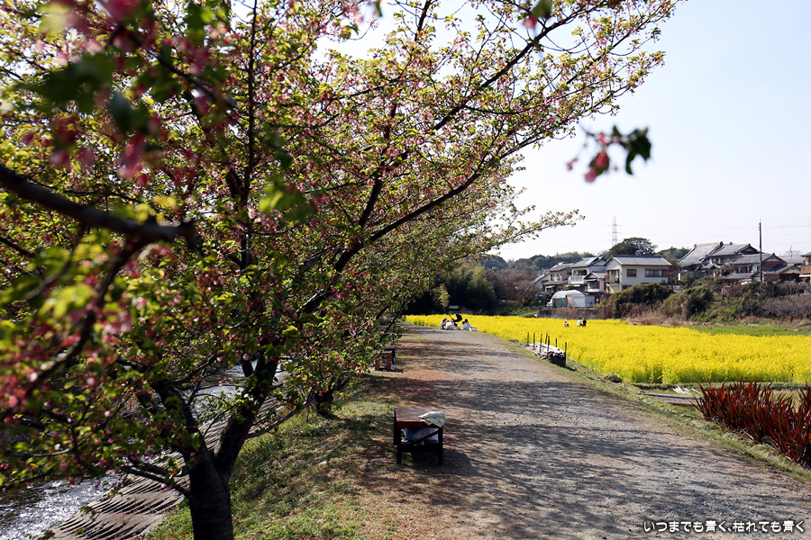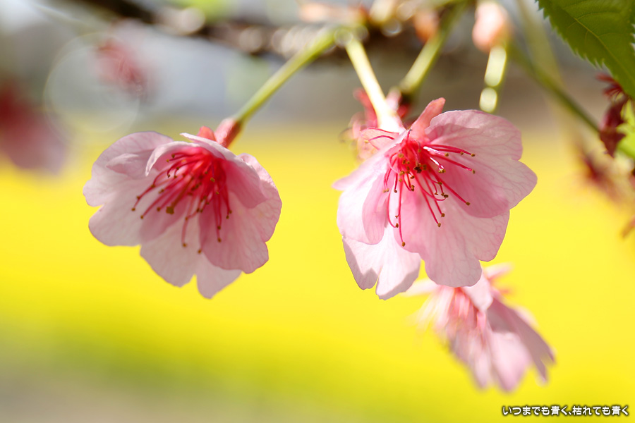浜松市に河津桜と菜の花の競演をみることができる場所があることを知って始めて訪れたのですが、もう葉桜の状態で残っている花はチラホラという感じでした。事前に調べたらわかったのかも知れませんが、来年に向けての偵察にはなりました。手ぶらで帰るわけにもいきませんので、残っている状態の良い花を見つけて撮影してきました。