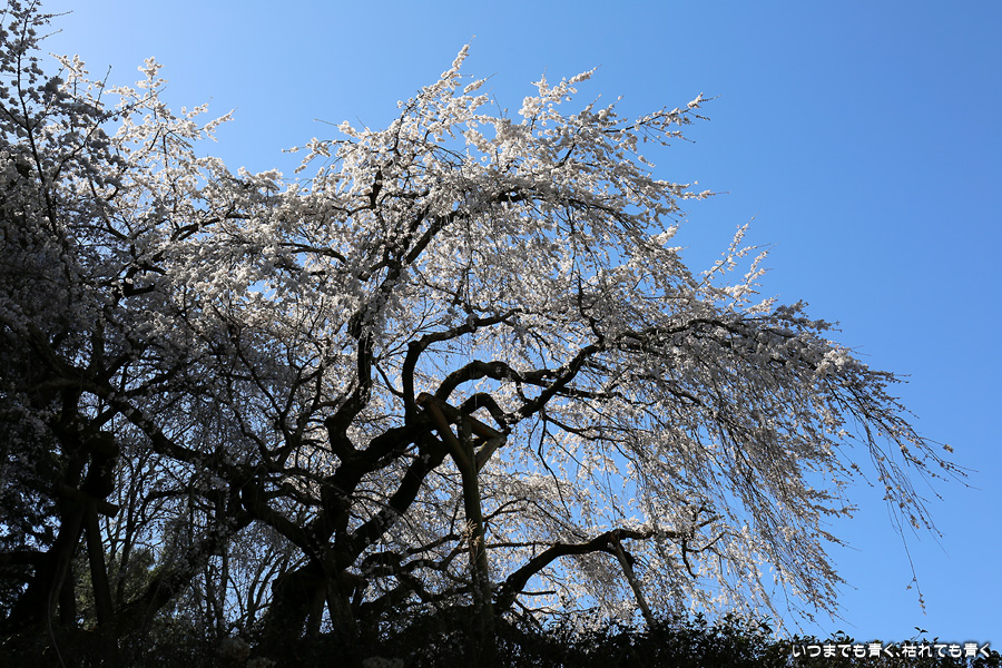 1300年ほど前に持統天皇によりお手植えされたと伝えられている奥山田のしだれ桜(天然記念物)です。今年もコロナ禍によりライトアップは中止とのことです。しだれ桜自体も過去に来た時に比べると花が少なくて全体的に寂しい感じがします。