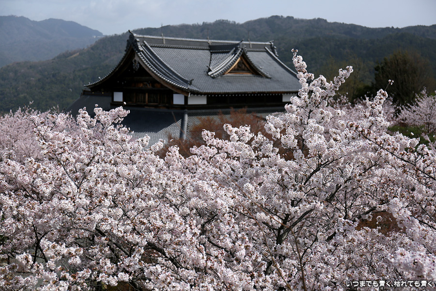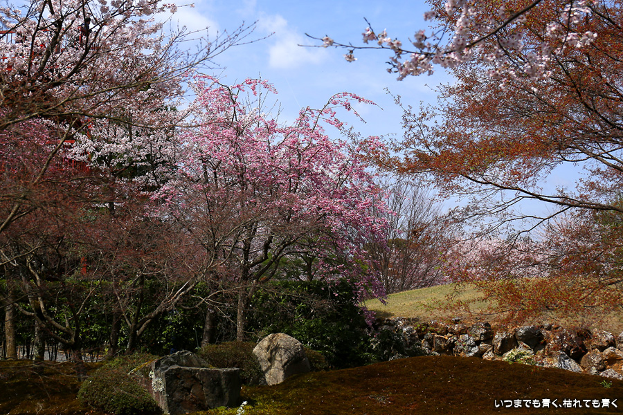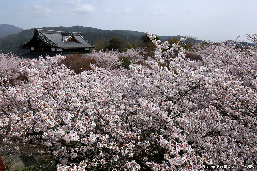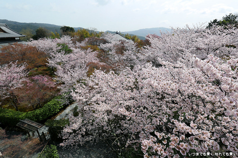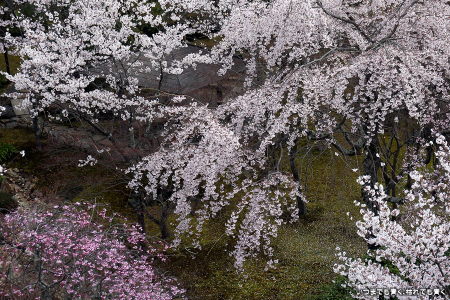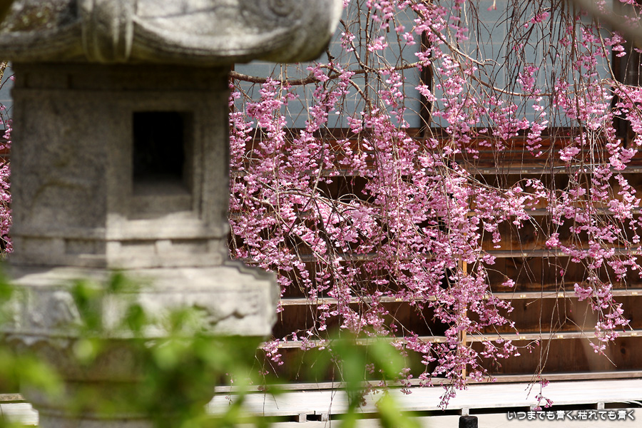 紅葉の季節には来たことのある将軍塚青龍殿ですが、春の桜の季節の将軍塚青龍殿は初めてです。青龍殿の前のピンクのしだれ桜、展望台から眺める桜の花の雲海がとても美しかったです。人も多くなくてのんびりと桜の撮影を楽しむことができました。