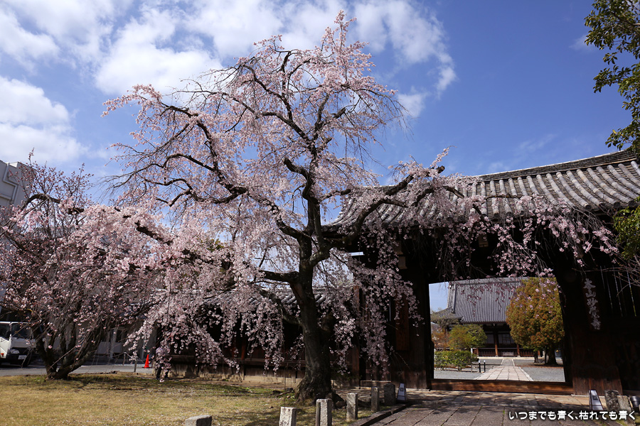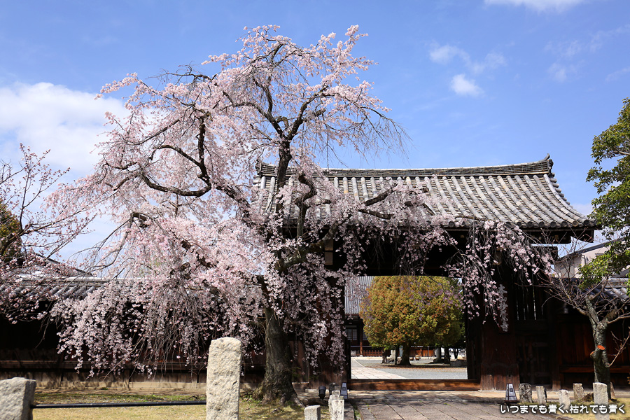 妙覚寺は桜の名所というわけではありませんが、本法寺・水火天満宮から妙顕寺に行く途中にあるので、今年も大門前のしだれ桜の写真を撮影しました。今回は青空なので、桜は少なくても華やかな感じがします。御朱印は今までは若い僧侶の方ばかりでしたが、今回は年配のご住職が対応していただきました。いろいろと話をしていただきましたが、私には難しくて相槌を打つのが精一杯でした。