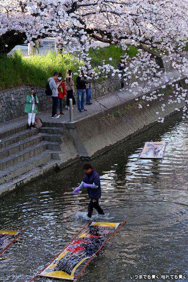 大口町五条川の桜並木から車で南に下り、岩倉市の五条川の桜並木を見てきました。岩倉桜まつりは今年も中止だそうですが、桜の見頃に合わせて「のんぼり洗い」の作業は実施のことで、この日も作業をされていました。ただ、大口町に行ったせいで到着時刻が遅くなってしまい、片付け作業を少し見ることができただけでちょっと残念でした。長く続く見事な満開の桜並木でしたが、すぐに日が傾いていき寒さも感じ始めましたので、駆け足で写真だけ撮って戻ってきたという状況で、のんびりと桜を楽しむという感じではありませんでした。
