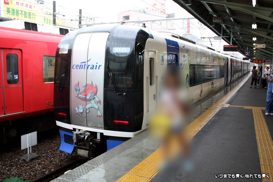 末娘とポケモンスタンプラリーに行った時に乗ったり各駅で見たりした名鉄電車です。末娘にピントを合わせているので電車はややピントがずれています。