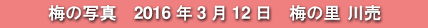 2016年3月12日に訪れた、愛知県新城市・梅の里川売の梅の写真です。