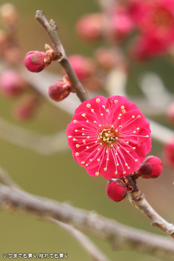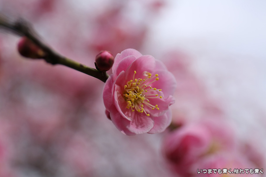 メジロを待っている間に、きれいな梅の花をパチリ。個人的にはピンク、白、赤の順に好き。