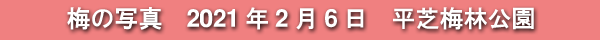 2021年2月6日に訪れた、愛知県豊田市・平芝梅林公園の梅の写真です。