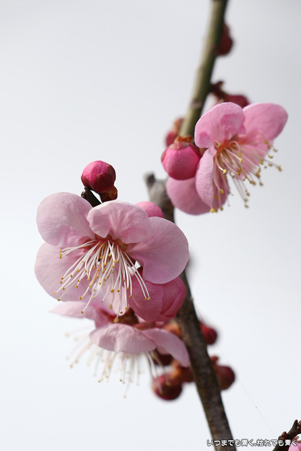 メジロを求めて岩津天満宮の梅林にやってきましたが、ここもメジロには出逢えませんでした。きれいに整備された梅林の梅の花はここもチラホラ。ひとつひとつの梅の花はとても美しいです。帰りに参拝のために訪れた境内の梅の花も撮影しました