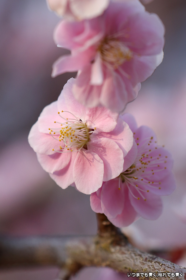 今年はメジロと出会えないので、状況を見るために娘と夕方立ち寄りました。やはりメジロはいませんでしたので、目につく梅だけ写真におさめて帰りました。