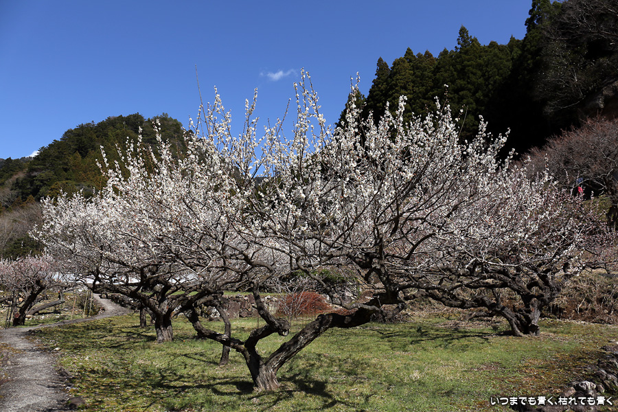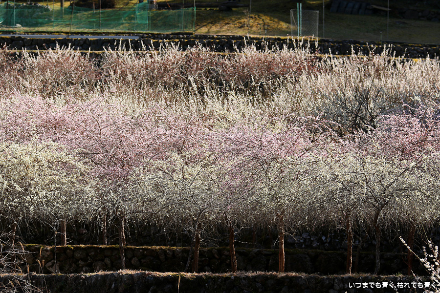 以前来た時よりも梅の花が少ない感じがしたので、地元の方に尋ね咲き具合を尋ねたら、ここの梅は観光用ではなく食用の梅収穫のための梅の木なので、収穫時期をずらした種類の木々を植えてあるそうです。なので、花も順番に開くということでまだこれから咲く木もたくさんあるとのことでした。民家や梅畑の間の迷路のような道を、小鳥のさえずりを聞きながら梅の花を見てのんびりと歩くのは心落ち着くいい時間です。