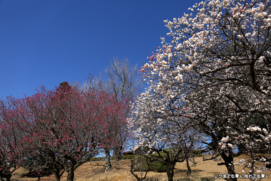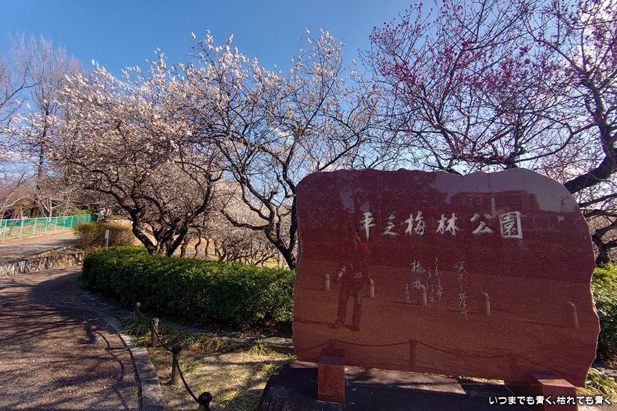 2025年3月18日(火)に撮影した、愛知県豊田市・平芝梅林公園の梅の花の写真です。