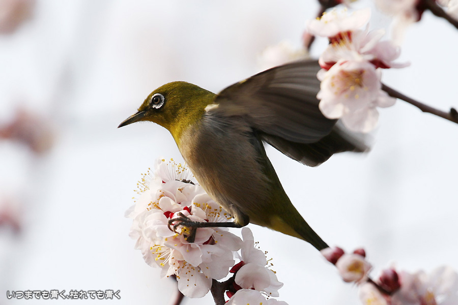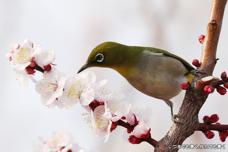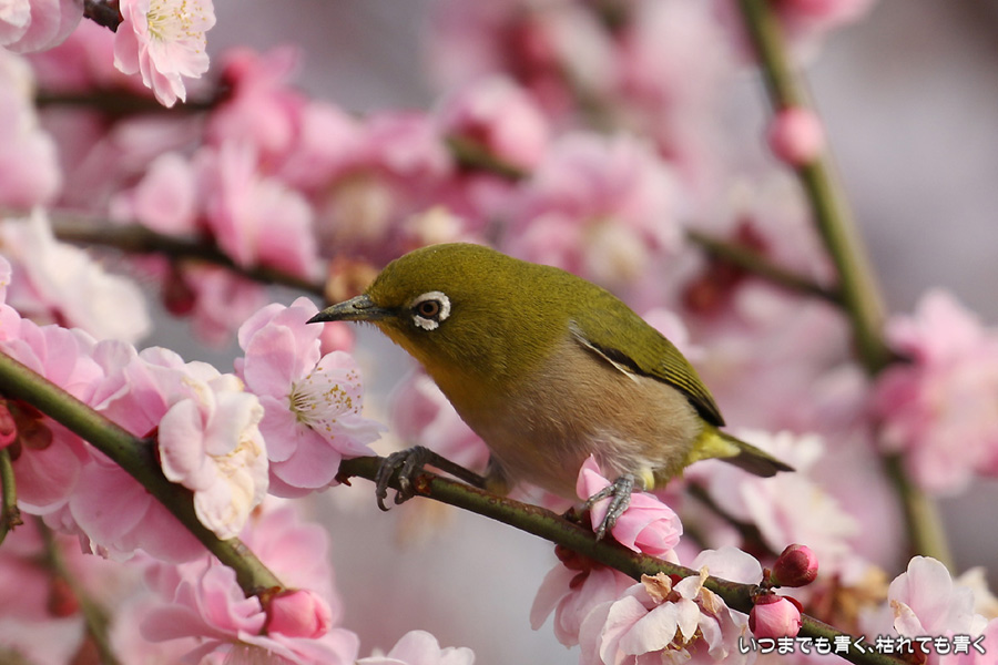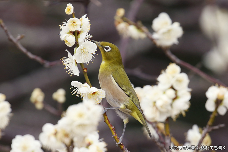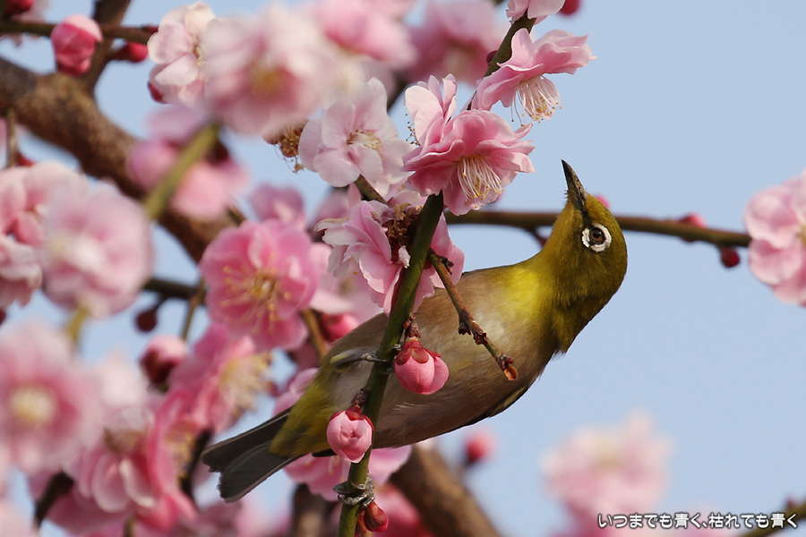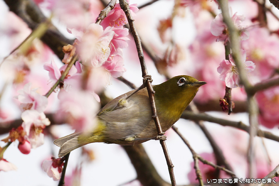 2016年3月5日に撮影した、愛知県豊田市・平芝梅林公園のメジロの写真です。