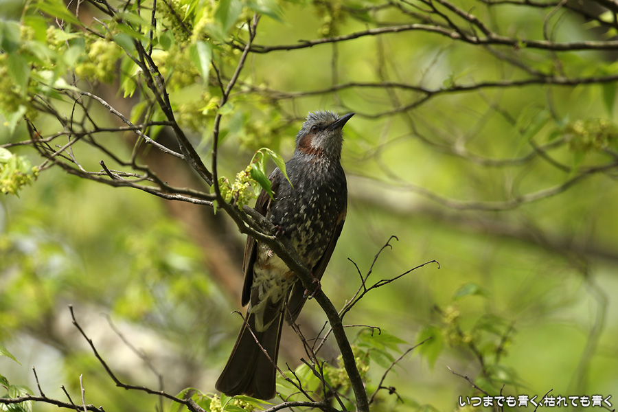 キリシマツツジを見に行った帰りに立ち寄った愛知県緑化センター。裸木ばかりだった冬とは見違えるような緑。鳥たちは、虫を探して食べるのに夢中でした。