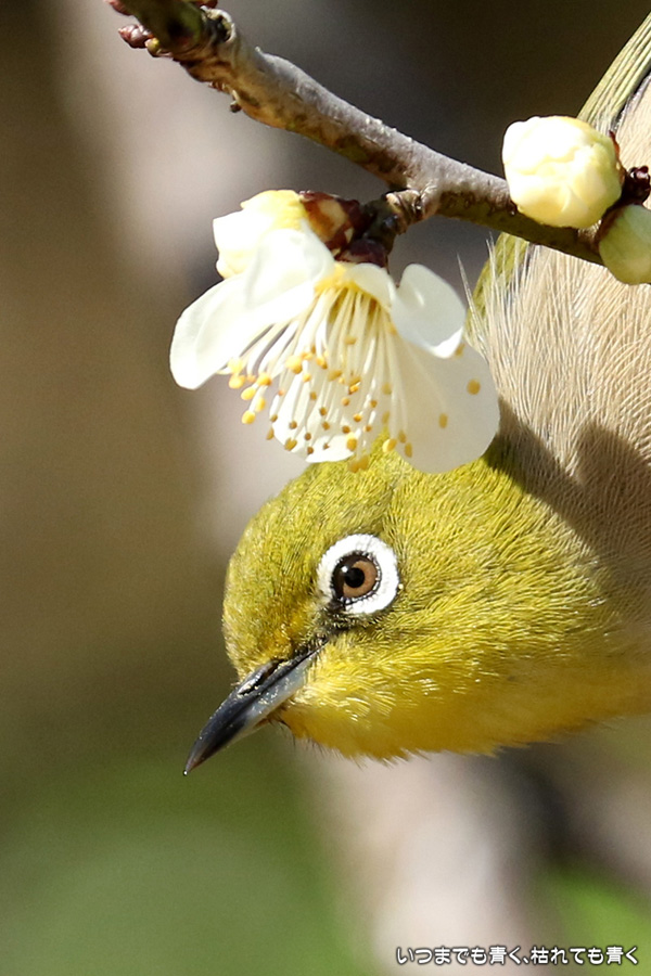 2017年3月3日に撮影した、愛知県豊田市・平芝梅林公園のメジロの写真です。