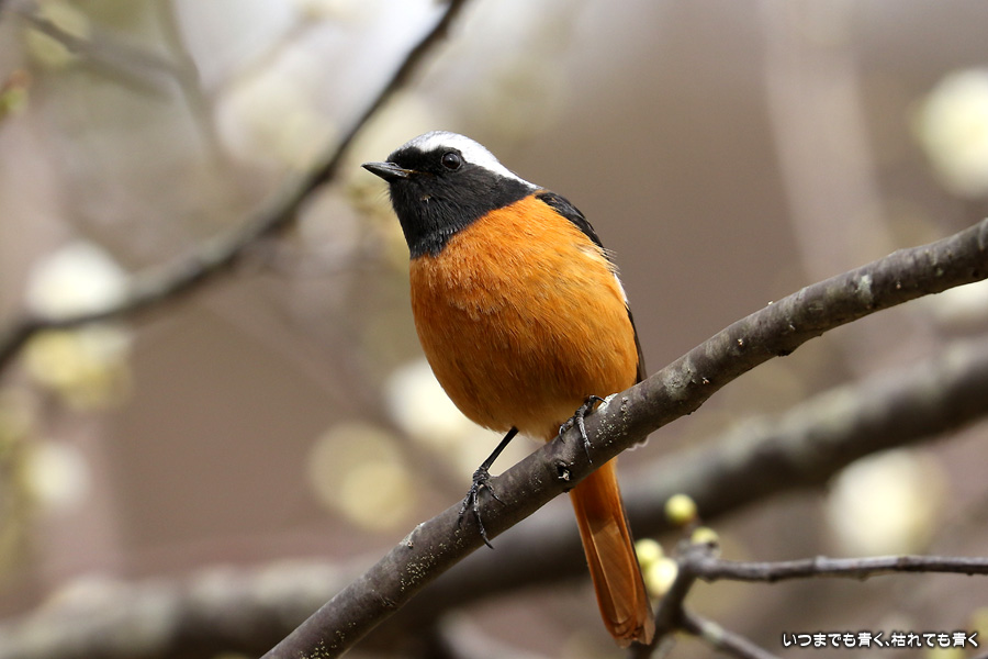 2019年3月24日に撮影した、愛知県豊田市・平芝梅林公園のメジロとジョウビタキの写真です。