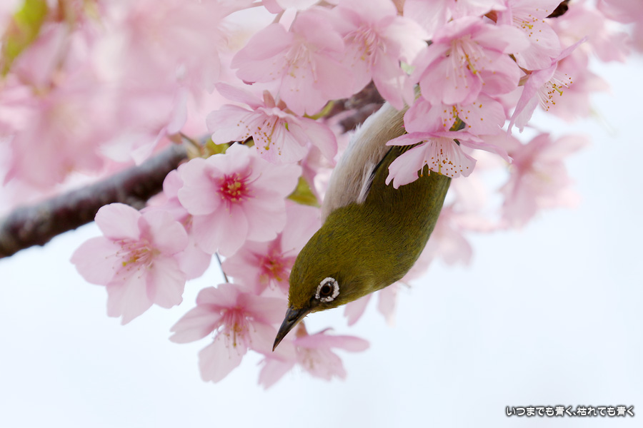 田原市の免々田川の河津桜に集まっていたメジロです。少ししか見つけられなかったので、枚数は少ないですが、いい感じに仕上がりました。