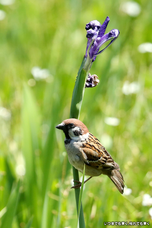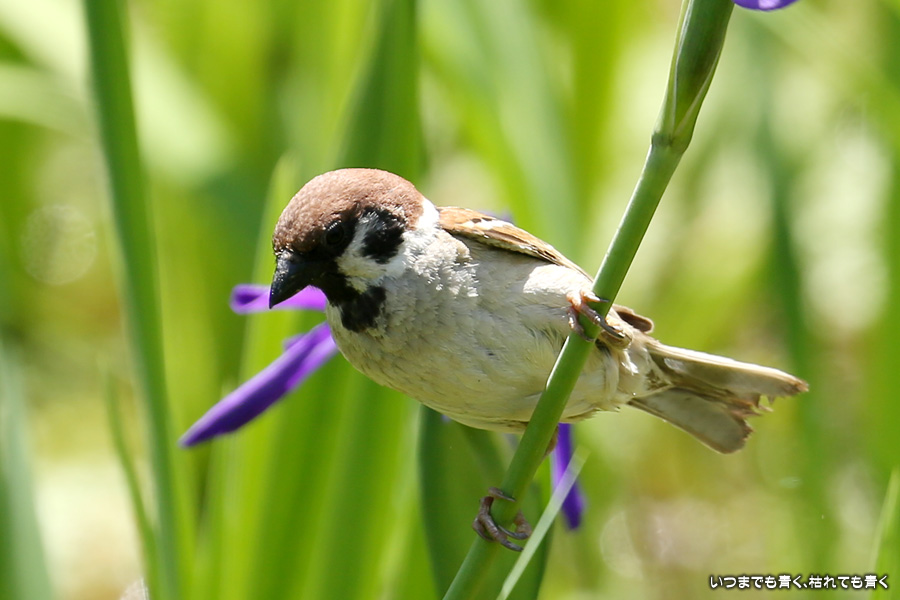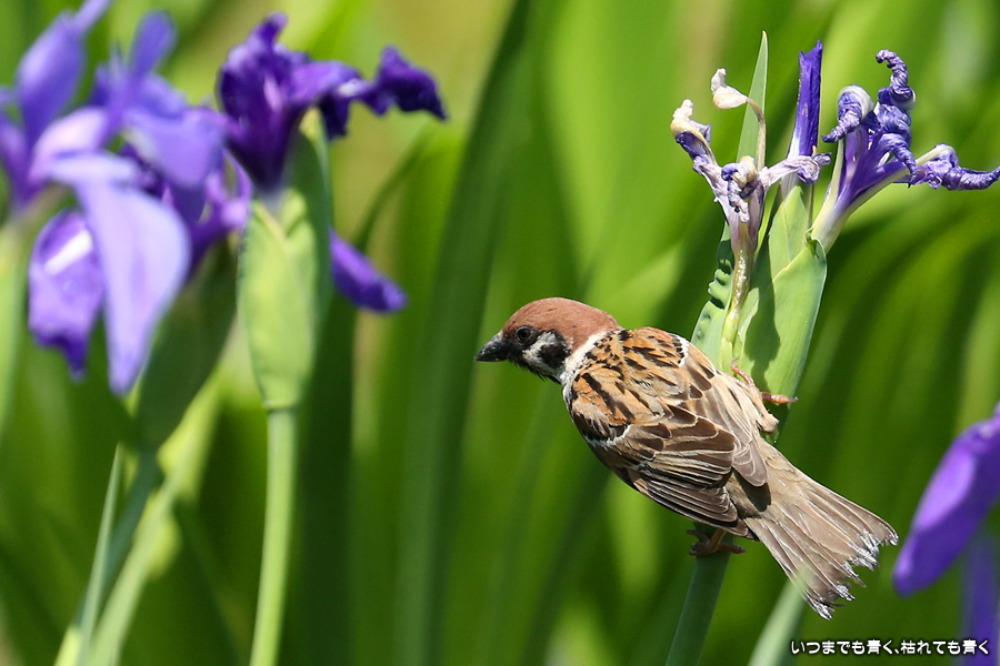 普通ならばスズメなんて撮影しないのですが、かきつばたの撮影に飽きてぼんやりしていた時にスズメが遊びに来たので撮影してみました。かきつばたとの写真だともう少し絵になったのですが、そうはうまくはいきません。顔が黒くつぶれてしまった写真が多かったのが、まだ撮影がヘタッピな証拠です。