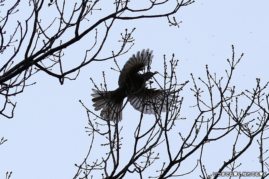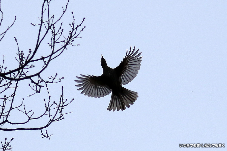 冬の夕刻の曇り空ということで撮影条件は良くありませんでした。メジロやジョウビタキにも会うことができましたがうまく撮れませんでした。羽根を広げて空を飛んでいる写真はすべてヒヨドリです。