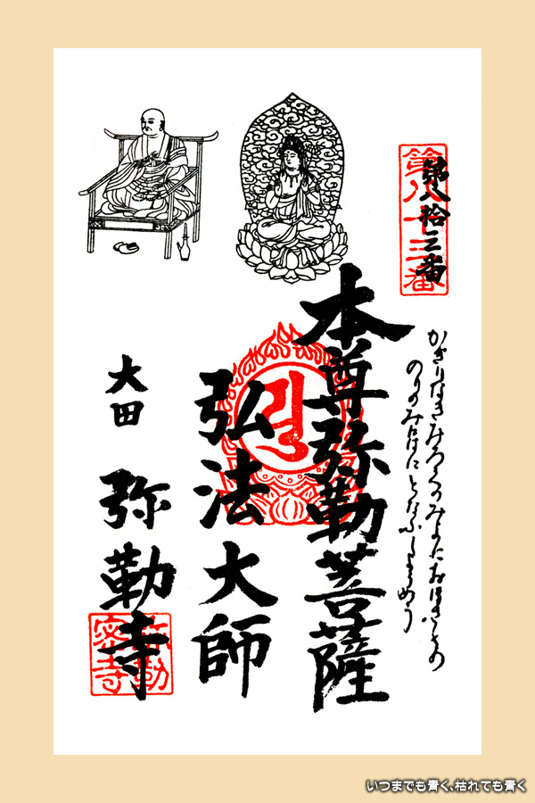 <札所>第83番 <寺名>待暁山弥勒寺(みろくじ) <宗派>真言宗智山派