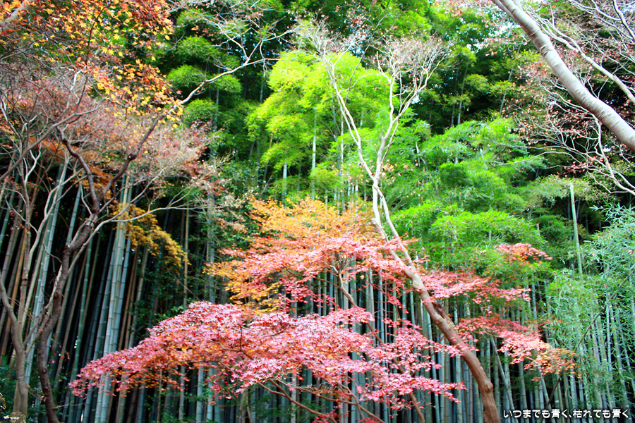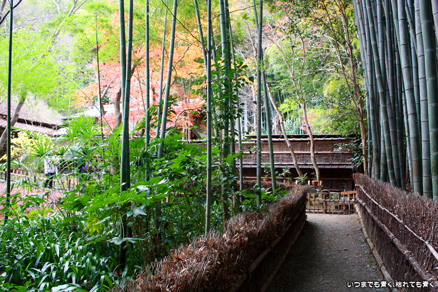 嵯峨野の雰囲気を味わいながら降りていくと、途中に祇王寺があります。祇王寺は、平清盛につかえたふたりの女性の哀れな物語の謂れの場所です。しんとしたたたずまいの尼寺は人の心の移ろいのはかなさを伝えているようにも思えます。