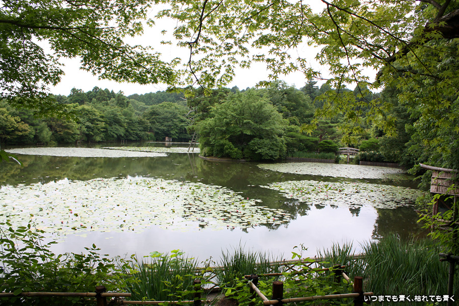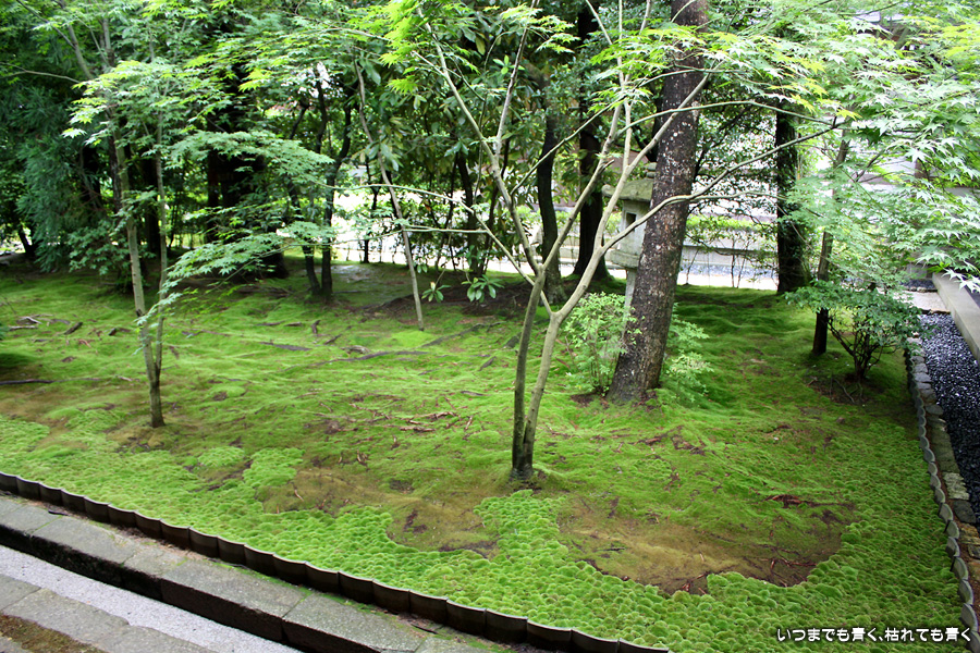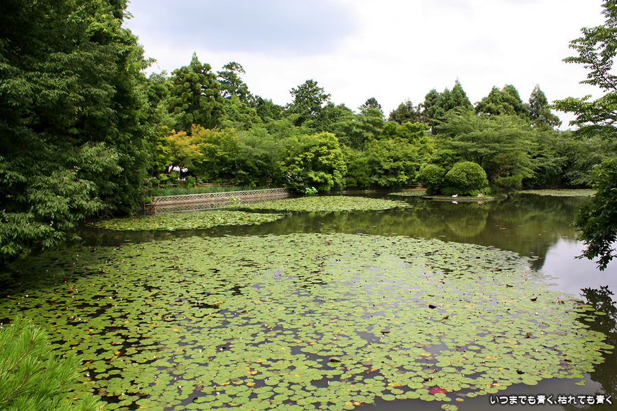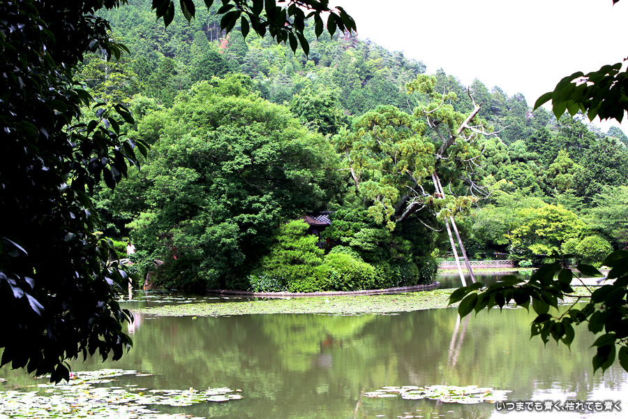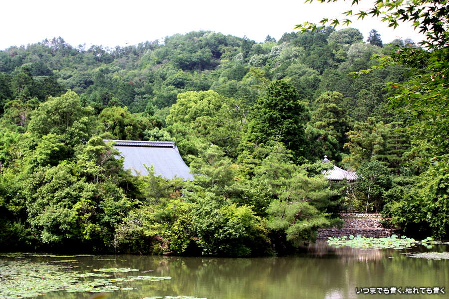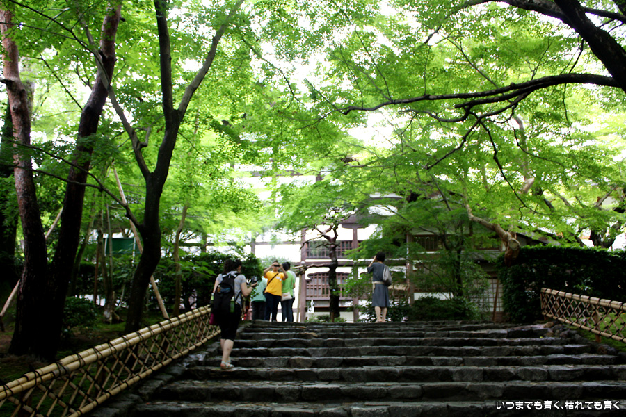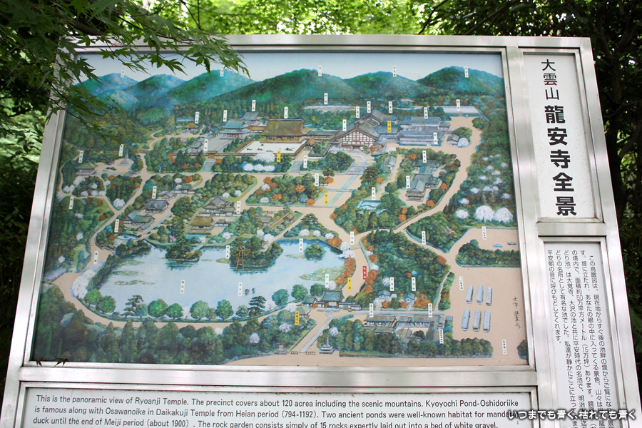 仁和寺から「きぬかけの路」を歩いて龍安寺に向かいます。龍安寺は有名なところなので、過去に来ているかも知れません。でも、忘れてしまっています。若い頃は自分から京都に行きたいと思ったこともありませんでしたし、連れてきてもらっても全然興味なかったですからね。そういう記憶ですので、龍安寺のイメージは「石庭」のみ。来てみてこんなに広いお寺だと初めて知りました。「石庭」は龍安寺の魅力のごく一部、私は庭園の方が味があって好きです。なんといっても緑が美しい。これがすべて紅葉したところを想像すると、絶対にその頃また京都へ、と思ってしまいます。ちなみに龍安寺も世界遺産です。