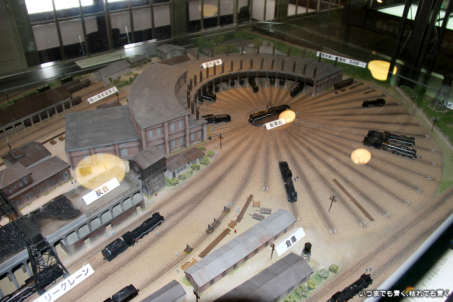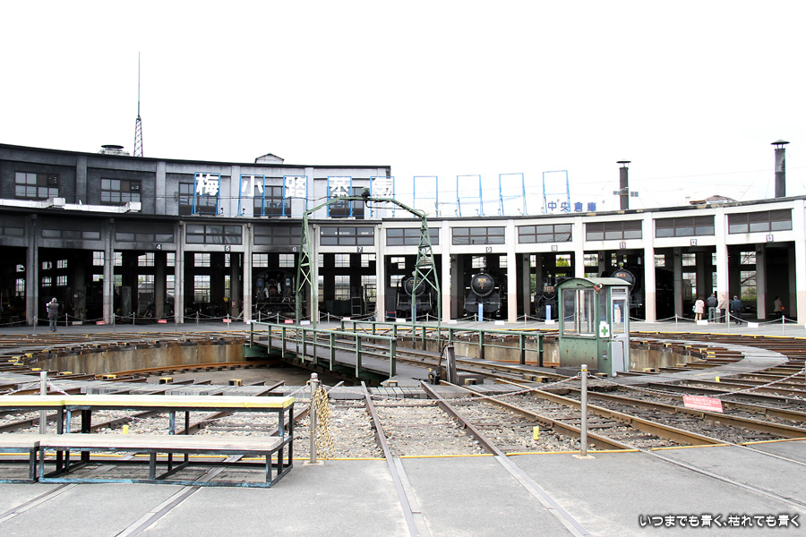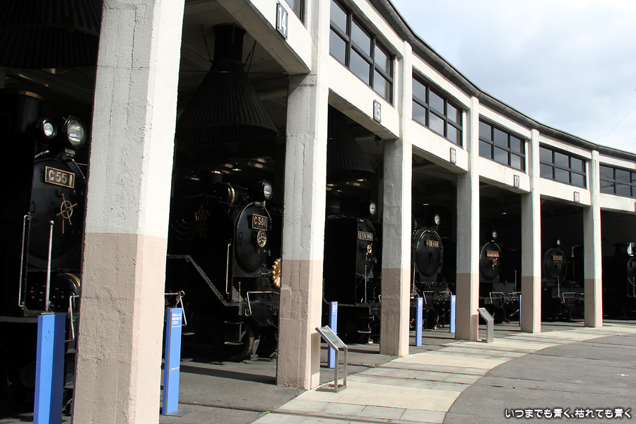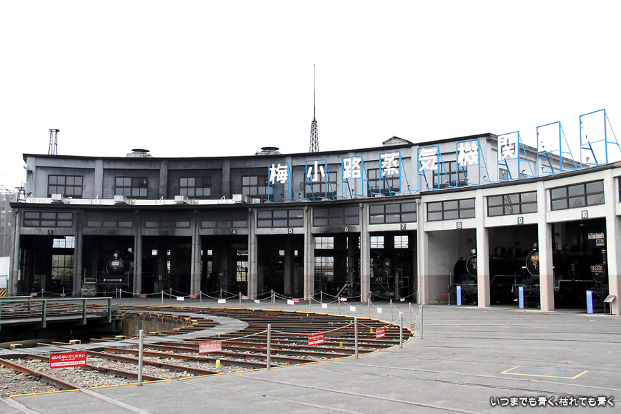 何度か京都に来ていながら一度も訪れたことがかなった梅小路蒸気機関車館。今回はどうしても行きたいと思って、初日の最初の目的地に選びました。京都駅から西に歩いて梅小路公園を抜けてJR(山陰本線)の高架をくぐると、昔の二条駅舎を用いた梅小路蒸気機関車館のエントランスが見えてきます。中は昔の駅舎の雰囲気そのままで懐かしい感じがします。駅舎と扇形機関庫が隣接していて、駅舎の奥から扇形機関庫に入ると多くの蒸気機関車の後姿が目に飛び込んできます。いくつかは機関室に入ることもできます。蒸気機関車も運転士や機関士は大変な重労働だったと思いますが、当時は蒸気機関車の運転士や機関士という職業は誇りだったのかなと思います。私の祖父も蒸気機関車の運転士だったことが誇らしげでしたから。蒸気を発生させ、その蒸気でピストンを動かし、その力をロッドで巨大な動輪に力を伝えて回す、そのメカのしくみや動きはとても魅力的で美しく感じます。