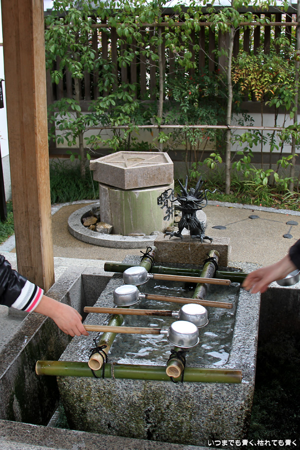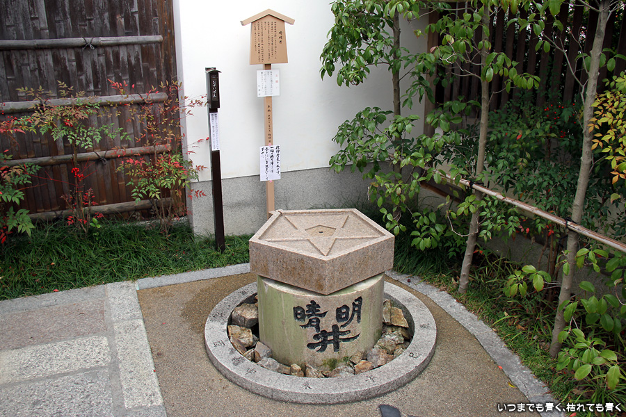 神社のいたるところに魔よけの記号である「五芒星」が掲げられています。販売所には、「五芒星」のついたお守りなどが売られていますので、パワーが必要な人はぜひ買ってみましょう。さらに境内には、病気平癒のご利益があるという安倍晴明が念力で湧出させた水が湧き出る「晴明井」があります。飲んでも問題ないそうですが、ご利益を後で知ったので飲まずに帰って来てしまいました。次に行く機会があれば、ぜひ飲んでみましょう。晴明神社の前には、大正11年から平成7年まで実際に使われていた旧一條戻橋が復元され、その脇には式神の石像がちょっと不気味な感じで鎮座されています。現在の一條戻橋は、晴明神社のすぐ南の堀川に架かかるところにあります。一條戻橋というのは、熊野の僧・浄蔵が父の訃報を聞いて紀州熊野から京都に駆けつけた時、葬列がちょうどこの橋の上を通っており、そこで浄蔵が棺にすがって泣き悲しみ神仏に祈願したところ、不思議なことに父が蘇生したという伝説から戻橋と名付けられ橋です。そういうことから、「あの世」と「この世」をつなぐ橋とも言われています。