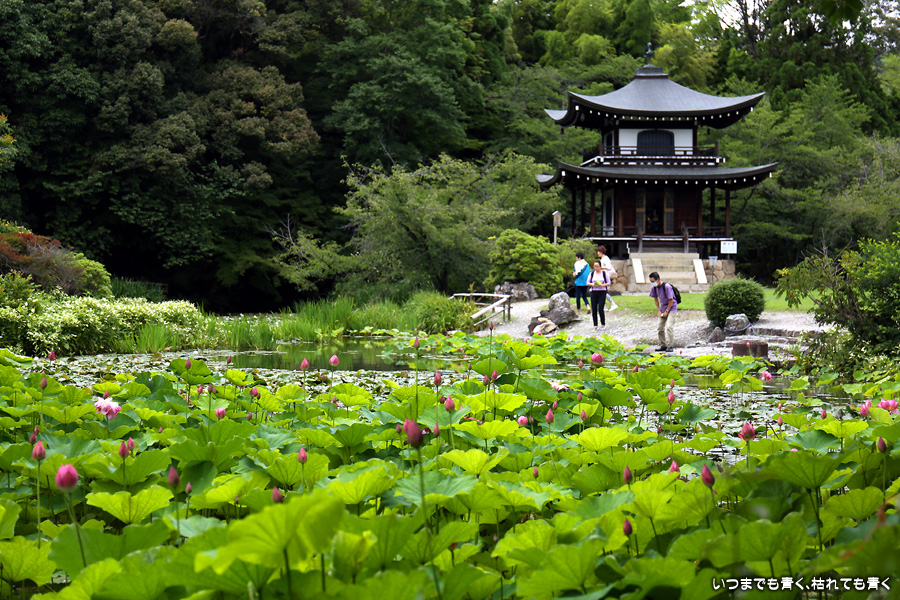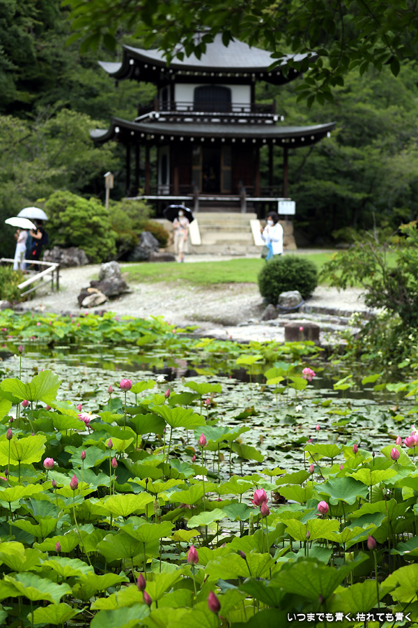 初めて訪れた勧修寺(かじゅうじと読みます)です。無料駐車場も完備されていて、車でも安心して訪れることができます。このお寺は人も少なく落ち着いていて、のんびりと時を過ごすにはいいお寺です。観音堂の横の池には蓮と睡蓮がたくさん咲いていました。ただ、蓮は午後なので閉じている花が多かったのが残念でした。池の奥の道ではカワセミ狙いのおじさんがいて、一時間くらい写真談義を楽しみました。楽しいひとときでした。