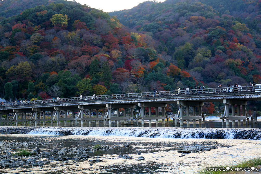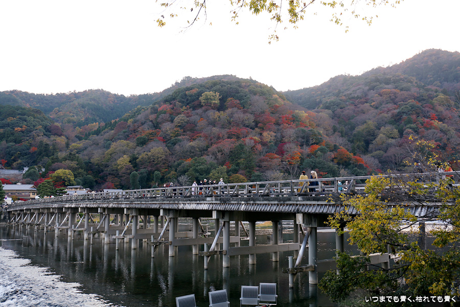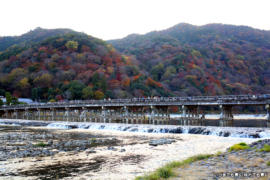 嵐山の紅葉名所を巡ったあとに立ち寄った渡月橋です。ここの写真も撮っておきたいと思って少しの時間写真を撮りました。同じ場所での撮影でしたので、構図的には同じようなものばかり、夕暮れだったので光量も不足、といった写真です。