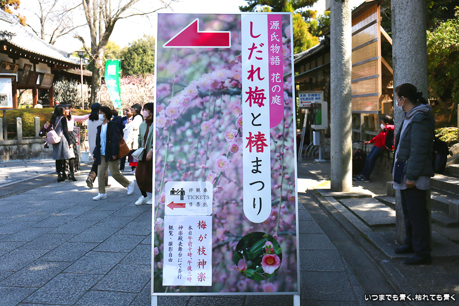 城南宮は2020年の同じ時期に来てから2度目です。写真コンテンツに掲載した「神苑のしだれ梅の写真」、「しだれ梅に集うメジロの写真」以外の写真です。いい天気で多くの人がしだれ梅を見るために訪れていました。