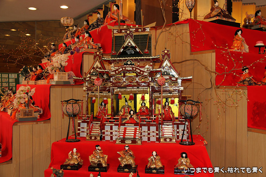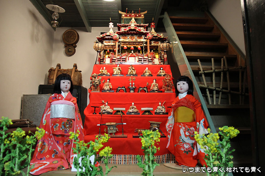 ![]() 二階に飾られたおひなさん(新町・山下仏壇店) |