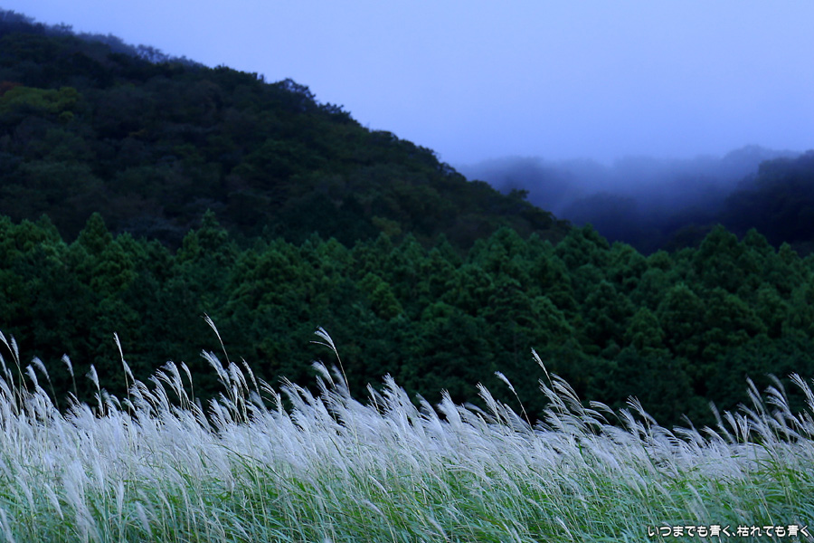 ススキが若い、強風、曇り空の夕暮れ、の三重苦で写真撮影にはイマイチでした。それでなくてもススキは私にとって難しい被写体なので、迷いだらけの写真となりました。一面黄金色になれば壮観なんでしょうね。