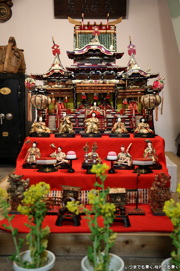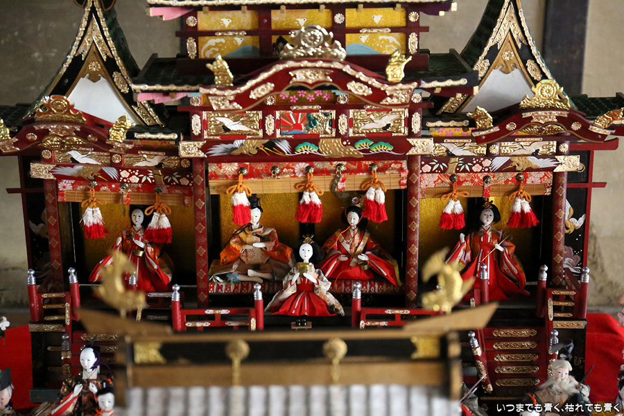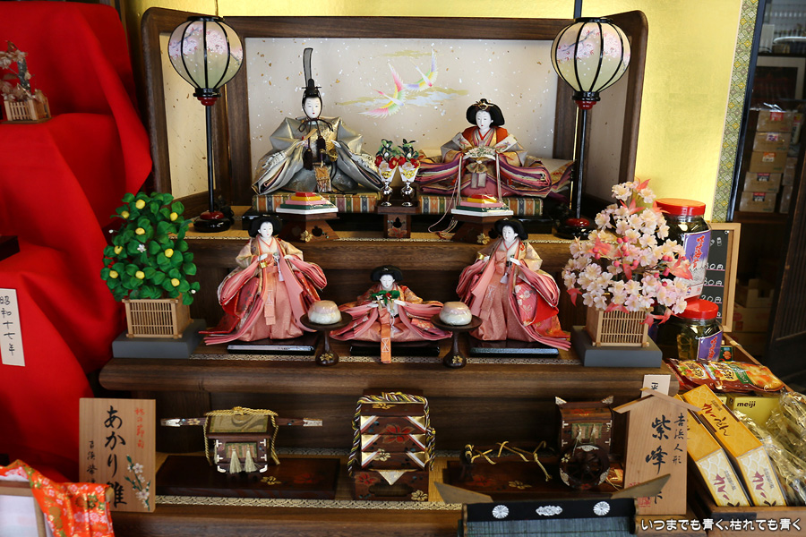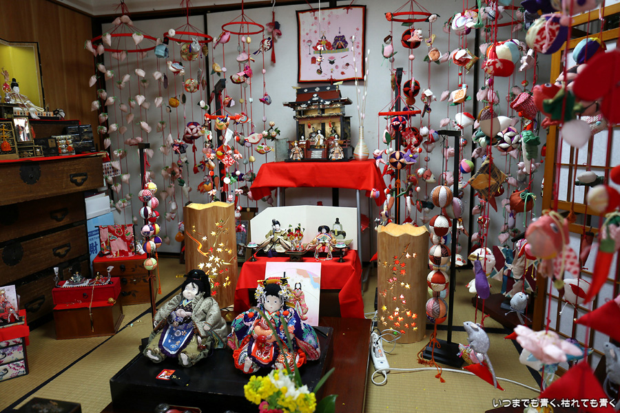 2013年から2016年まで毎年訪れていて、それ以来の久しぶりの訪問でしたが、展示するお宅が少なくなって賑やかさがなくなっていてちょっと寂しい感じでした。会えるのを楽しみにしていた松美屋さんのおばあさんとおひなさんは、体調を崩されているとのことで会えることができませんでした。いつも車を止めさせていただく駐車場の奥さんからいろいろと話を伺いましたが、高齢化が進んでいることや、おひなさんを公開しているお宅には何の手当もないということで、このままだとだんだんとすたれていくと心配されていました。