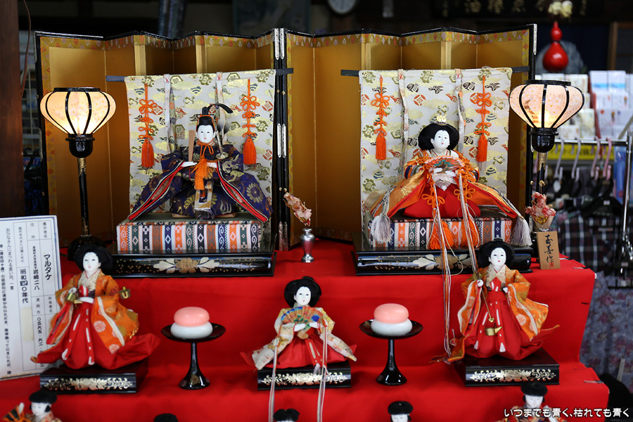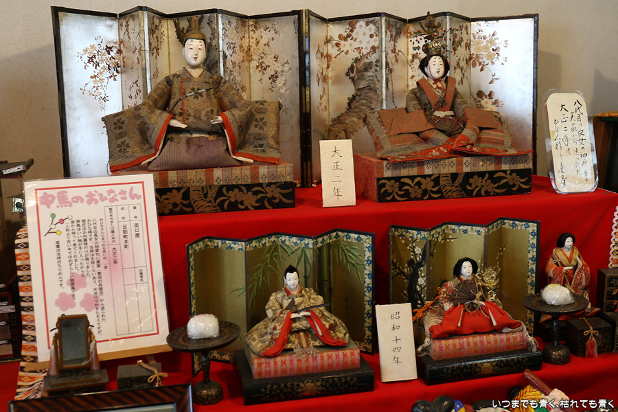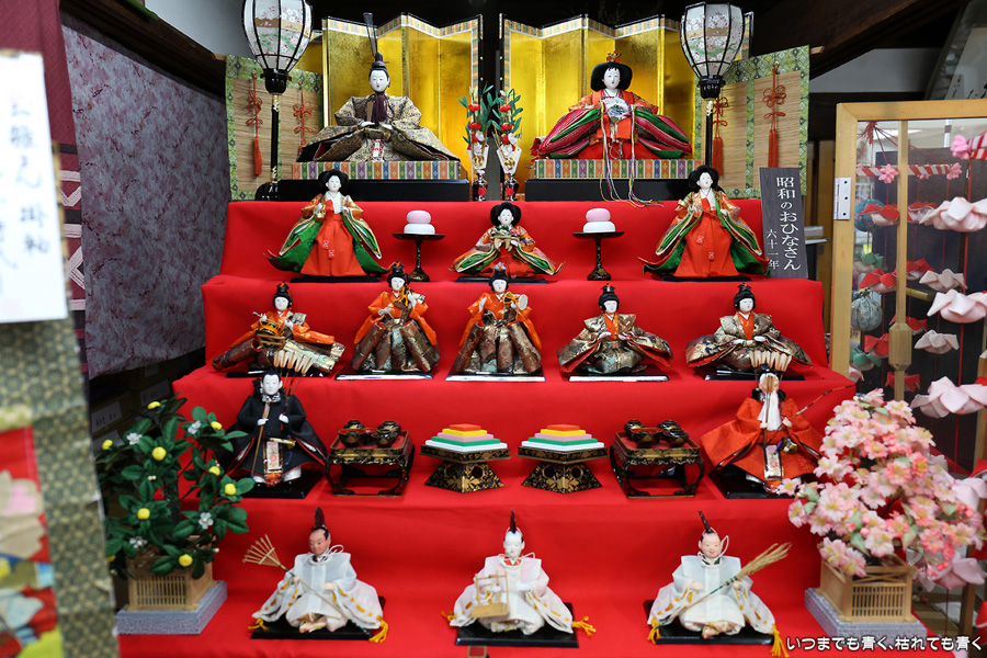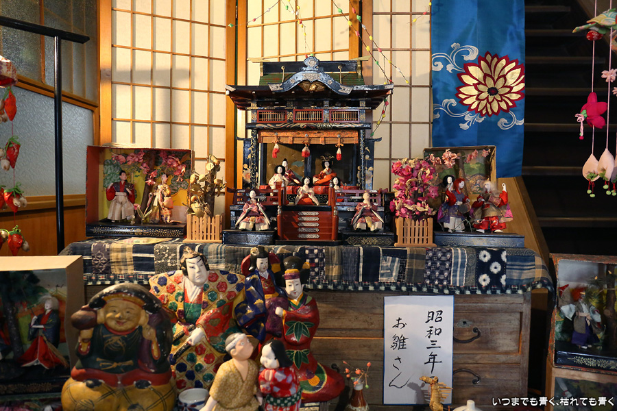 2013年から2016年まで毎年訪れていて、それ以来の久しぶりの訪問でしたが、展示するお宅が少なくなって賑やかさがなくなっていてちょっと寂しい感じでした。会えるのを楽しみにしていた松美屋さんのおばあさんとおひなさんは、体調を崩されているとのことで会えることができませんでした。いつも車を止めさせていただく駐車場の奥さんからいろいろと話を伺いましたが、高齢化が進んでいることや、おひなさんを公開しているお宅には何の手当もないということで、このままだとだんだんとすたれていくと心配されていました。