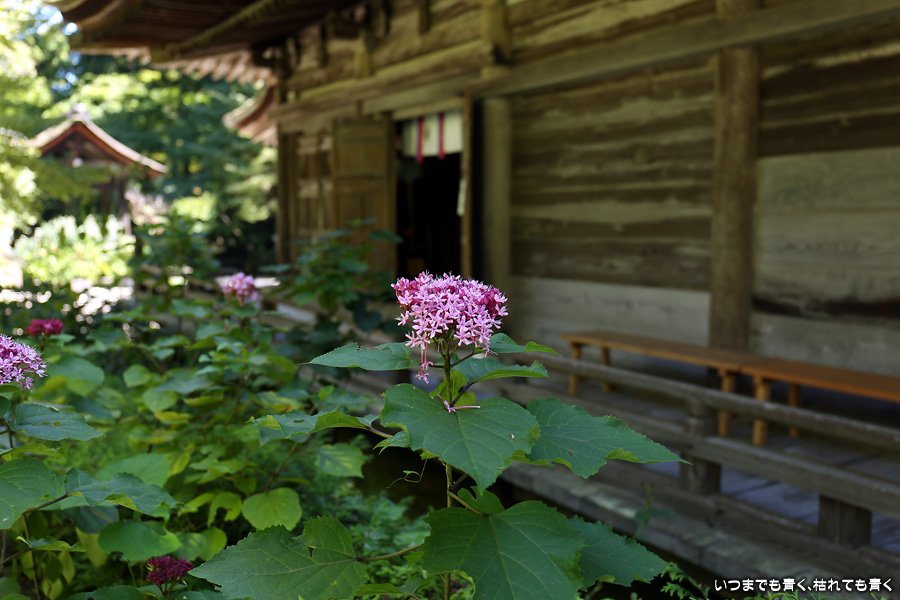 長寿寺は湖南三山のひとつです。湖東三山は何度も訪れていますが、湖南三山は初めての参拝となります。長寿寺の境内は広くはありませんが、お寺らしからぬ置物があったり、花畑があったりして、厳かな古いお寺の雰囲気の中に癒しポイントがあるのが新鮮です。参道から分かれて境内に白山神社が併設されています。