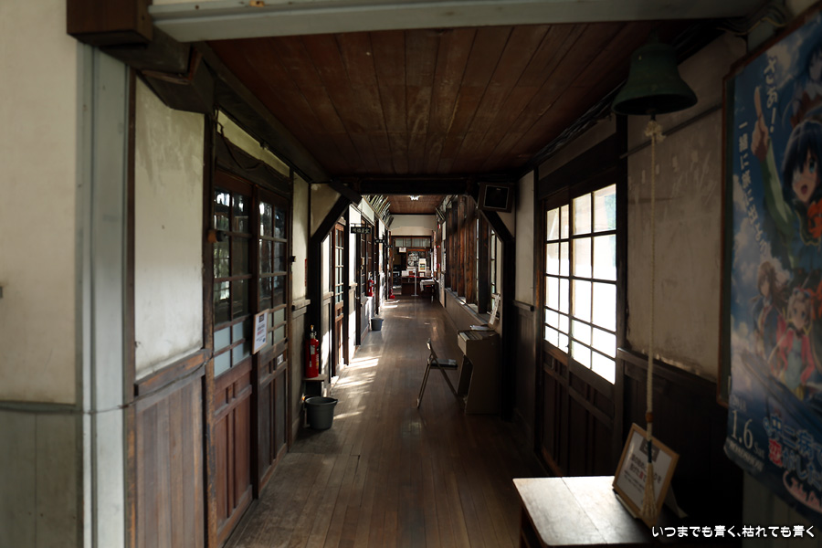アニメの聖地、旧鎌掛小学校(しゃくなげ学校)です。と言っても、聖地となっているアニメ(中二病でも恋がしたい!)を私はまったく知りませんので、アニメの聖地として特に思い入れがあるというわけではありません。ただ、ドラマや映画のロケ地としても有名で、ロケ地好きの私としては一度は身を置いておくのはいいかなと思って立ち寄りました。この校舎は、2001年まで現役の校舎でした。