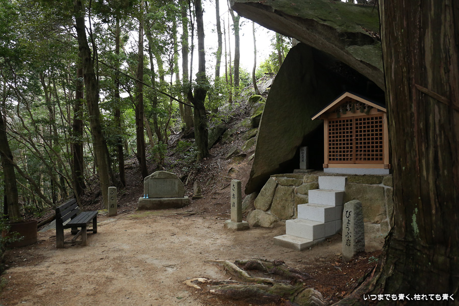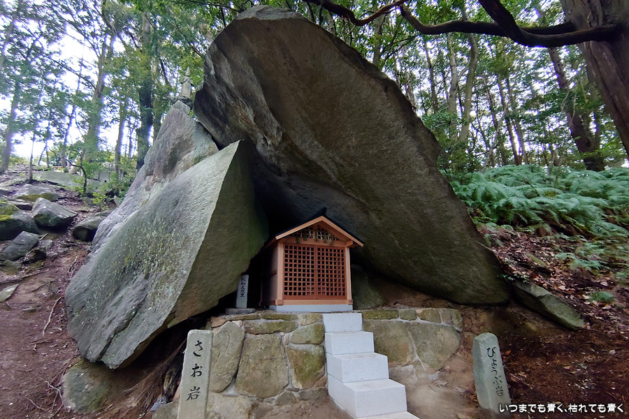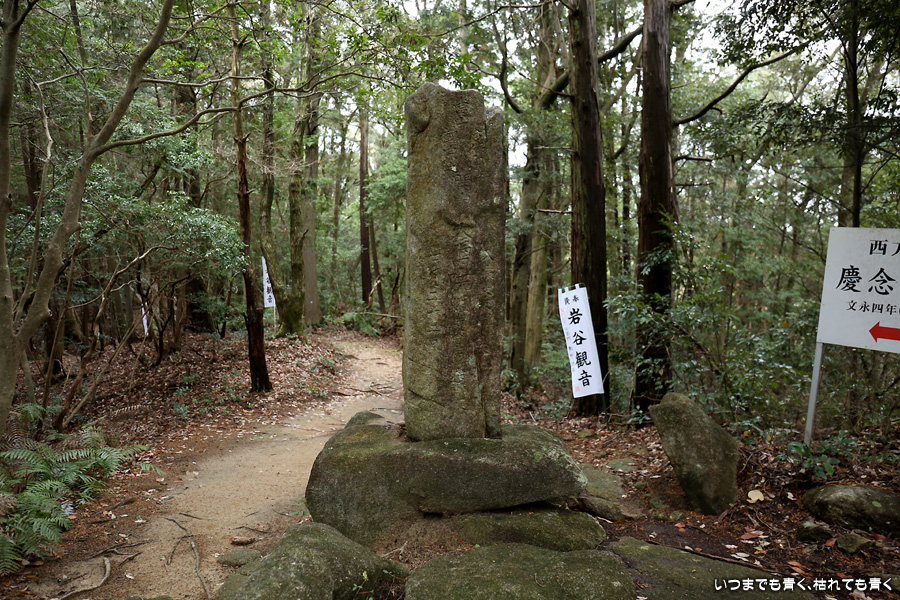 豊田市の岩谷観音に行くときに場所を検索した時に見つけた同じ名前の観音様です。こちらは岡崎市にありますが、豊田市の岩谷観音とは道のりで15kmほどの距離にあります。こちらの岩谷観音の奥の院は山頂にあり、表参道では岩だらけの坂道を15分くらいかけて登りますが、これがけっこうつらいです。手すりもなにもないので、滑らないように気を付けて登る必要があります。何度も諦めて戻ろうかと思いましたが、なんとか気力を振り絞って奥の院に着くことができました。さらに少しのぼれば本当の山頂にいけたのですが、今回はそこまで頭がまわらず奥の院に参拝することで満足して下山してきました。岩場の坂道の下りは怖いと思っていましたが、裏参道というのがあって、そちらはなだらかな道だったのでそちらで下山しました。車のたどり着く寸前で雨が降ってきて、天気が良かったので出かけようと思った状況とかなり変わってしまいました。運動不足の身にはきつかったですがいい運動になりました。